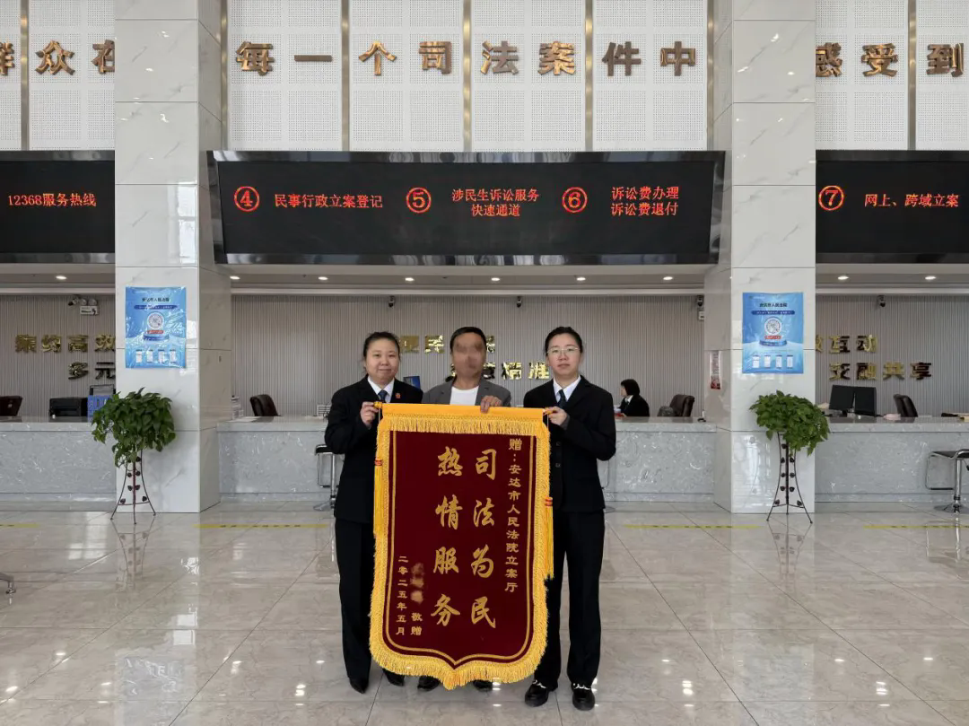 一面锦旗,传递的不仅是当事人的感激之情,更是对安达法院立案工作的认可与信任。立案庭始终坚持以人民为中心的服务理念,大力推进“一站式”诉讼服务建设,积极畅通现场立案、网上立案、跨域立案、邮寄立案等多种立案渠道,努力为人民群众提供更加优质、便捷的司法服务。针对群众在立案过程中遇到的困难,立案庭工作人员始终秉持耐心、细心、热心的服务态度,主动作为,帮助当事人解决实际问题,切实将司法为民的理念落实到每一个工作细节中。